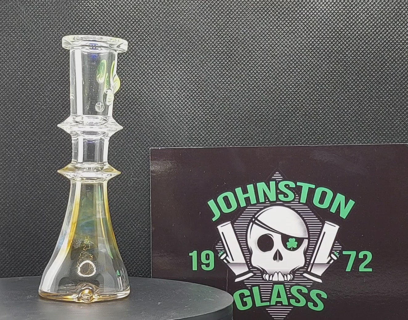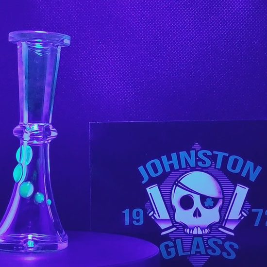 Each piece features silver fuming and a trail of dots made with real UV Reactive Uranium Glass (Ion Green).