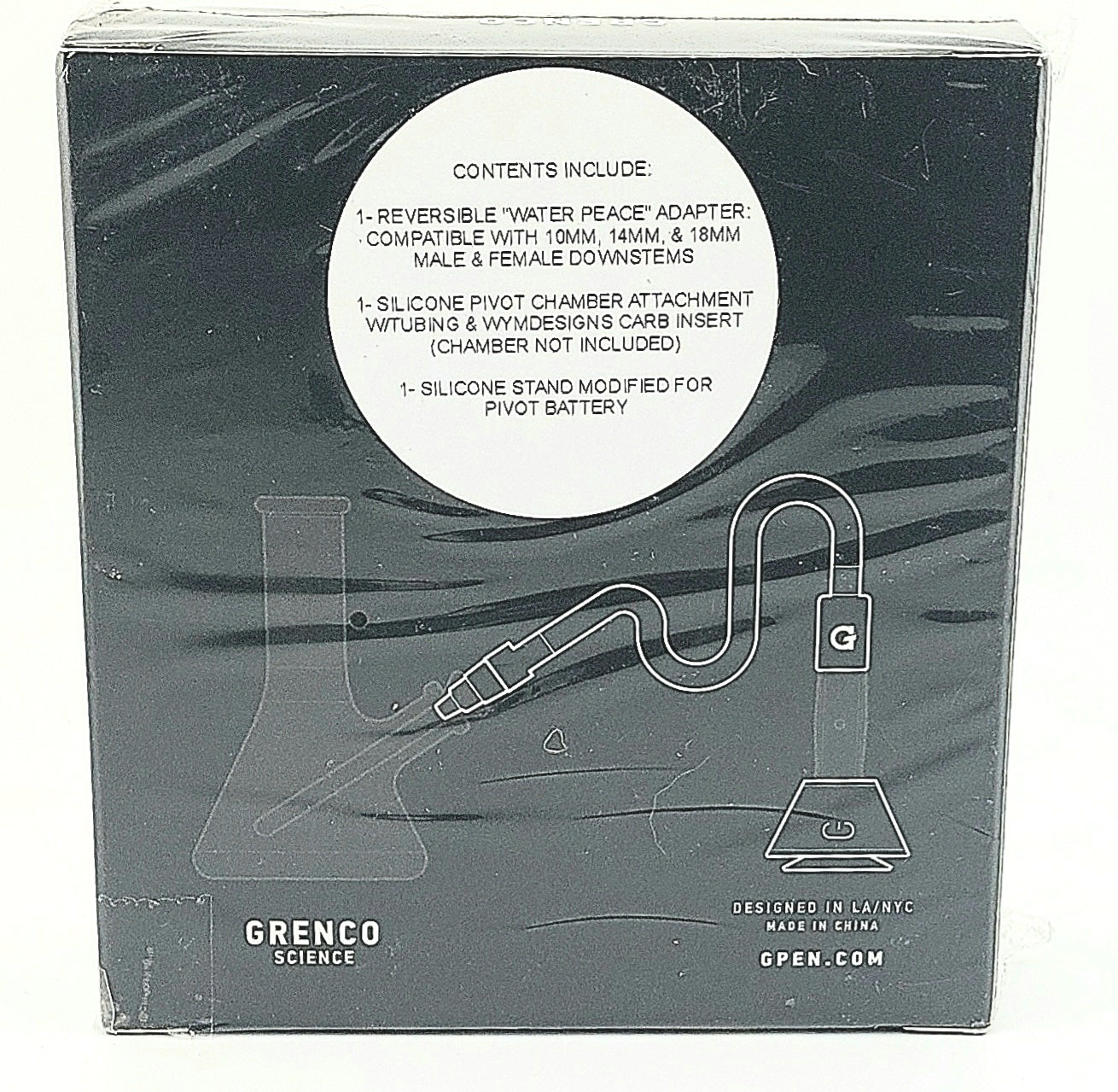 The Modified G Pen "Water Peace Adapter" connects the Puffco Pivot chamber to any glass water piece, providing the user a cooler and smoother draw, each and every time. The adapter is compatible with 10 mm, 14 mm, and 18 mm Male AND Female stems. Each kit comes with a suction-cup base stand for holding the Pivot in its optimal, upright position.